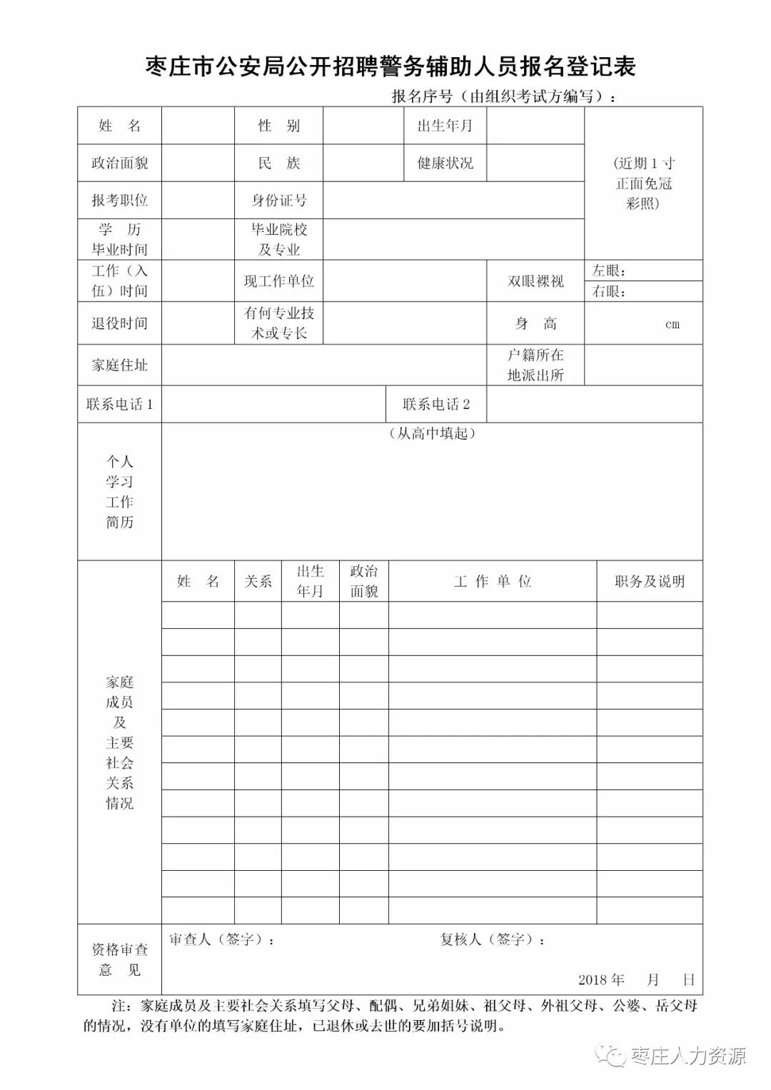 1、枣庄市公安局公开招聘警务辅助人员报名表