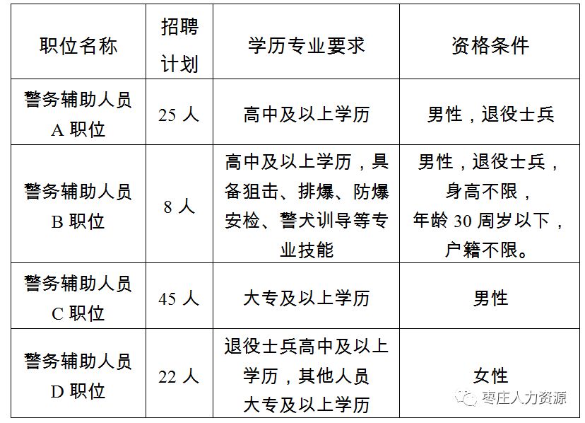 5、具有枣庄市常住户口(2018年3月31日前具有);全日制普通高等院校2017年毕业生和警务辅助人员B职位不受户籍地限制。